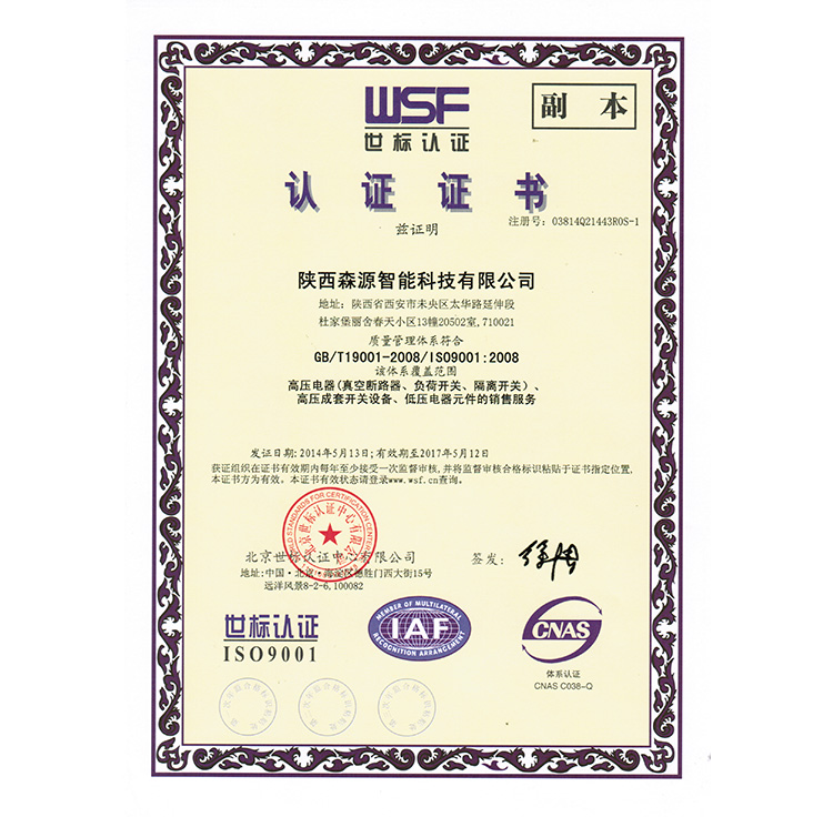 森源9000证书 中文