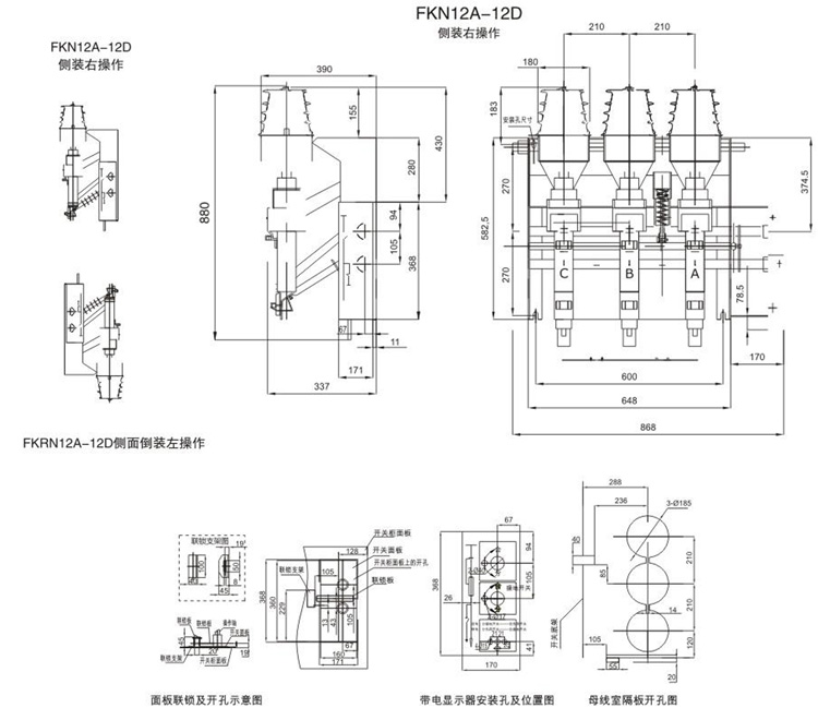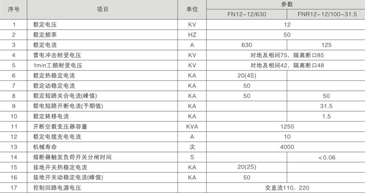 FN12-12D和FN12-12DR组合电器是额定电压12KV、额定频率50Hz的三相高压开关设备用于分合负荷电流、闭环电流、空载变压器和电缆充电电流、关合短路电流、熔断器组合电器可开断短路电流,配装接地开关的负荷开关,可以承受短路电流,主要用于三相环网或 终端供电的市区配电站和工业用电设备中,作负荷控制和短路保护之用。