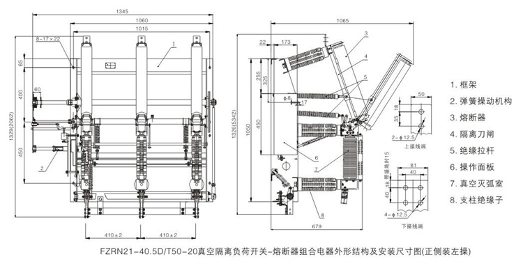 FZ(R>N21C-40.5D型户内高压真空负荷开关-熔断器组合电器的机械性能参数 见:表二