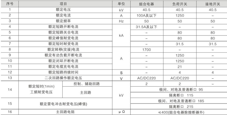 FZ(R)N21C-40.5D型户内高压真空负荷开关-熔断器组合电器的电气性能参数 见:表—