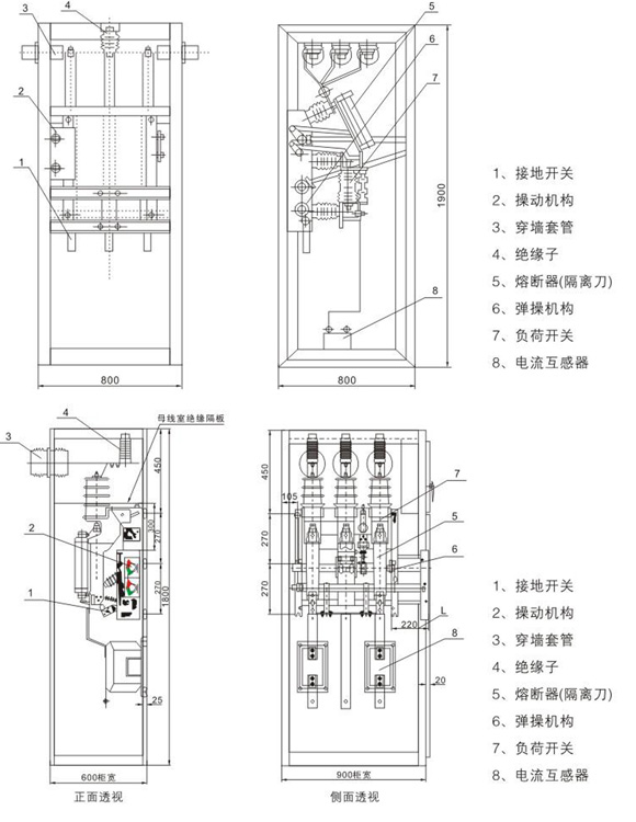 2)停电操作:当负荷开关处于隔离位罝,才能关合接地开关,接地开关处于合闸位罝时,插入绝缘隔板到位,才能打幵柜门。