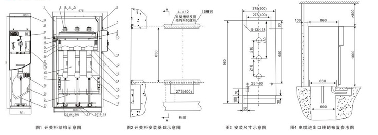 环网柜采用金属封闭箱式结构,主开关与柜体为固定安装,整个环网柜可分成上下两个部分,柜的上部包括母线室、开关室、低压 室,与下部电缆室(出线柜含熔断器)分隔开来以避免相互影响。因此,既提高了安全性,又便于安装、检修,还能在必要时整体更换上部 单元。整体外形尺寸(宽x深X高)有375x960x1600mm和500x960x1600mm等。(图1)
