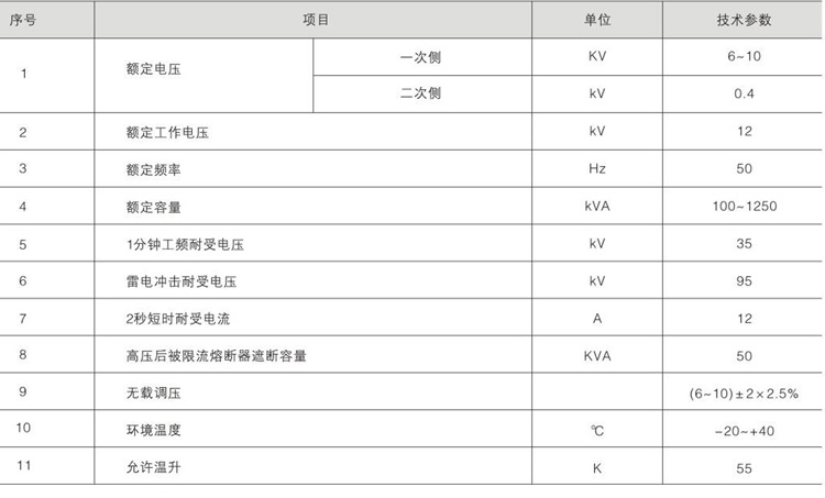 变压器性能卓越:低损耗、低噪音、低温升、过载能力强、抗短路、耐冲击能力强。