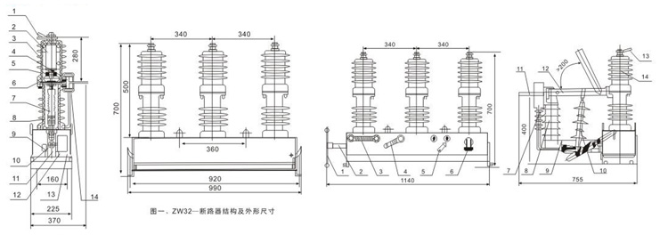 ZW32-12型户外真空断路器(以下简称断路器)为额定电压12kV,三相交流50Hz的户外配电设备。主要用于幵断、关合电力系统中的 负荷电流、过载电流及短路电流。适用于变电站及工矿企业配电系统中作保护和控制之用,及农村电网频繁操作的场所。