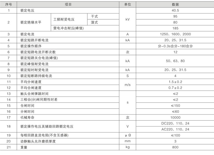 a.采用真空灭弧,开断能力强,电寿命长,机械寿命10000次;